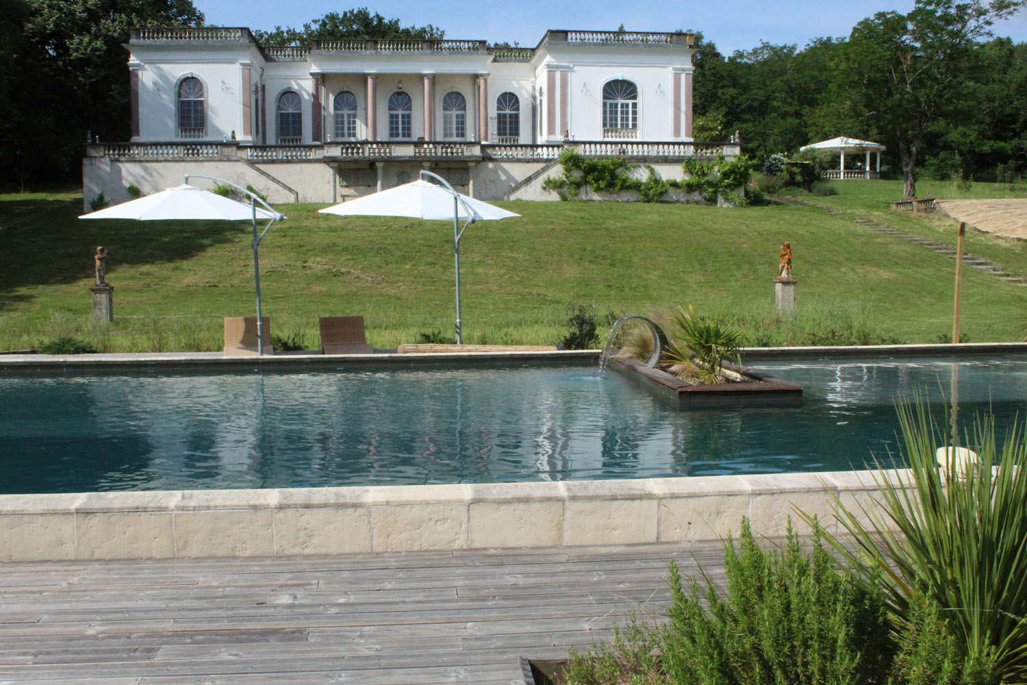 Front view of Chateau de Pourpry from the pool